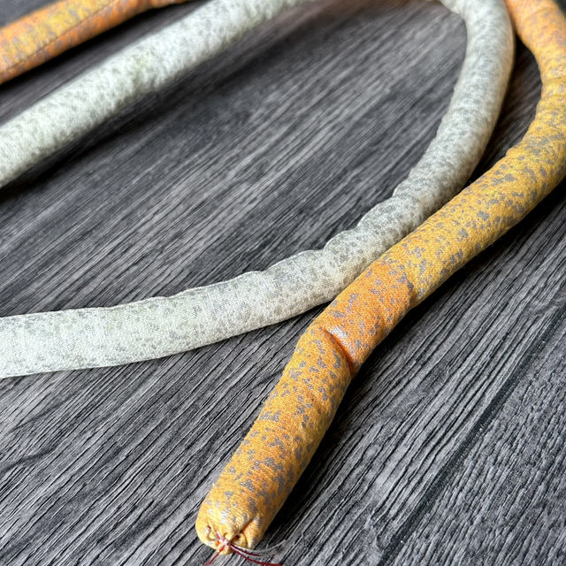 Ceinture en soie damassé blanc et orange. Vintage en excellent état. C’est une petite taille 117 cm